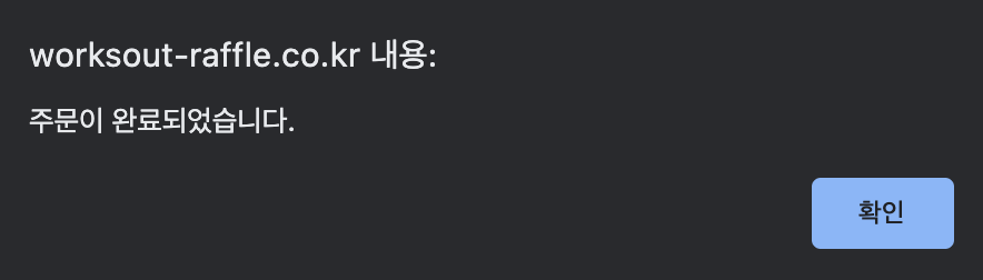 결제 진행을 완료하게 되면 '주문이 완료되었습니다'라는 문구와 함께 주문이 정상적으로 끝난 걸 확인할 수 있는데요, 웍스아웃 라플 페이지의 좌측 상단 'INFO'에 접속하면 '주문하기'였던 버튼이 '주문완료'라고 바뀌어 있는 모습도 확인할 수 있습니다.